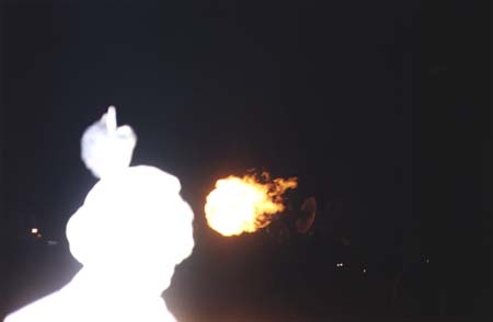 W tests out various marshmallow-toasting methods: the Propane Bike and some massive rolling flame-cannon gizmo
