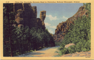 It's hoodoo city in the Chiricahua Mountains, stronghold of Cochise. (Hard to tell from the angle, but those hoodoos are probably a hundred feet high or so.) |