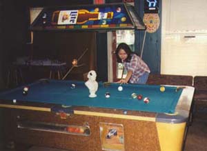 | After shopping, Felicia found it necessary to wipe the poolroom floor with me. |