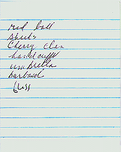 Friday was shopping day for parade requisites. (That last item is in my handwriting, which rots.) |