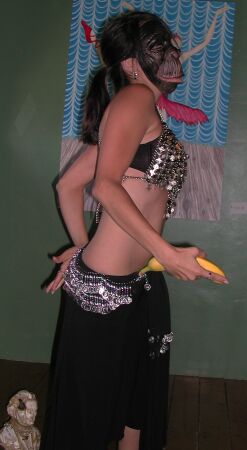 "...how the gorilla got in my bellydance costume, I'll never know." |