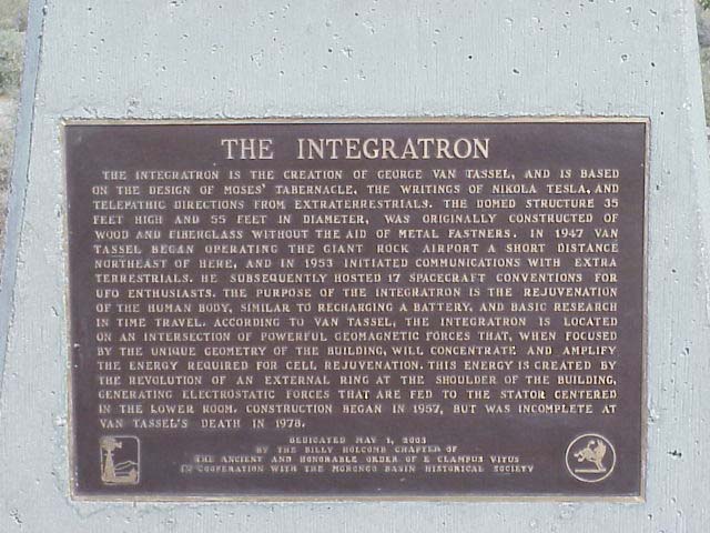 Meet the new Integratron, same as the old Integratron, except now there's a swanky plaque, courtesy of the Billy Holcomb chapter of the ever-mysterious Ancient and Honorable Order of E Clampus Vitus: