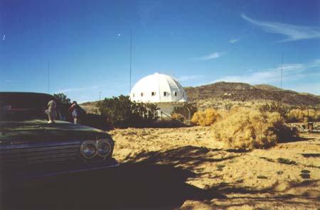 G. Danneels. That's 100% Daniels in one place. Mr. Boone, who lives next to the Integratron, told us all about how the Space People appeared to Van Tassel and how he helped George build the Integratron in the early fifties, using no nails or other metal. "Interferes with the electrical operation of the Integratron," he said. What does the Integratron do? "It'll add forty, fifty years to your life," claims Daniel Boone. I don't think it worked for Mr. Van Tassel, who died some time ago and, as such, joins such other immortals as Mary Baker Eddy and L. Ron Hubbard.