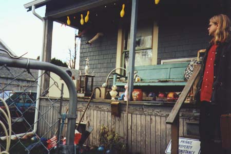 Wagner surveys the bowling motif of Cupcake's front porch as fellow