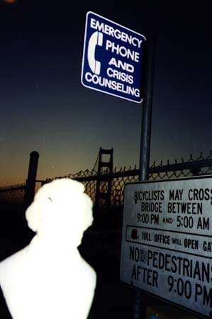 Wagner, however, is no fool. Leaping from the Rio Grande Bridge because of a woman was romantic; leaping from the Golden Gate Bridge would be just plain stupid. (W to counselor: "What? You've never heard of my famous Rio Grande Liebes-Leap? How do you think I got this hole in my head? See?!?)