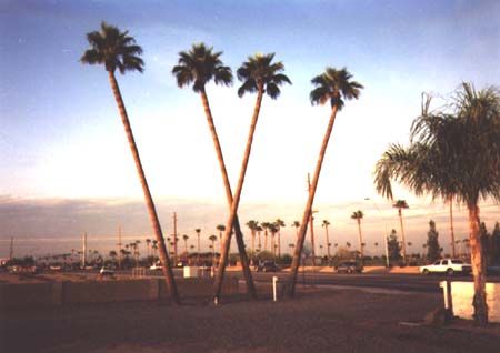 W Poses Beside the Wagner Memorial Palm Tree Arrangement