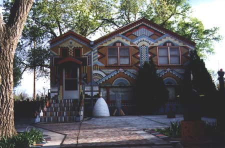 We stopped at this beautiful art house for an impromptu tour by the daughter of the artist. The caravan invited her to that night's drink & drop party at the ranch/studio where we were spending the night. Burford & I spent fifteen minutes trying to coax the Courtesy Van/Whip It! assembly into a u-turn on the ultranarrow street, finally ending up stuck in the driveway of a guy who looked none too pleased. Happily, he turned out to be a pretty nice guy. Even more happily, he turned out to be a tractor trailer driver, who helped us maneuver out of what looked to be our new permanent home. |