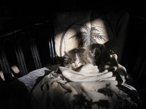 I had a strange episode the other day. Suddenly my vision went wacky. There was a shimmering blur right at the point of focus. When I tried to read, the first letter of each word was invisible. My first thought was that the government had finally figured out how to digitally censor images right at the source. Hooray! But that morning I had done heavy labor for hours outdoors in 110-degree heat, so that was likely the cause, somehow (though I couldn't count how many times in my life I've done the exact same thing). The vision thing went away after a couple of hours. The experience wasn't entirely unpleasant. Kind of like being high, only with a pounding headache you don't really care all that much about. At one point, my voice didn't seem to be coming from "me"I don't mean the sound of my voice, I mean the source of it. I was talking, but I was listening to the voice as if listening to someone else speak. ("Say, who WAS that fascinating fellow?")